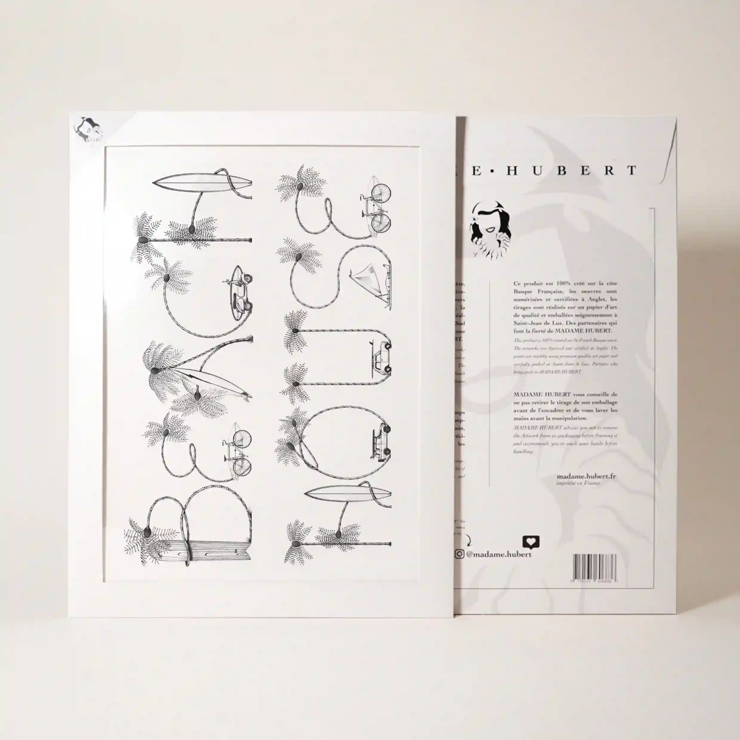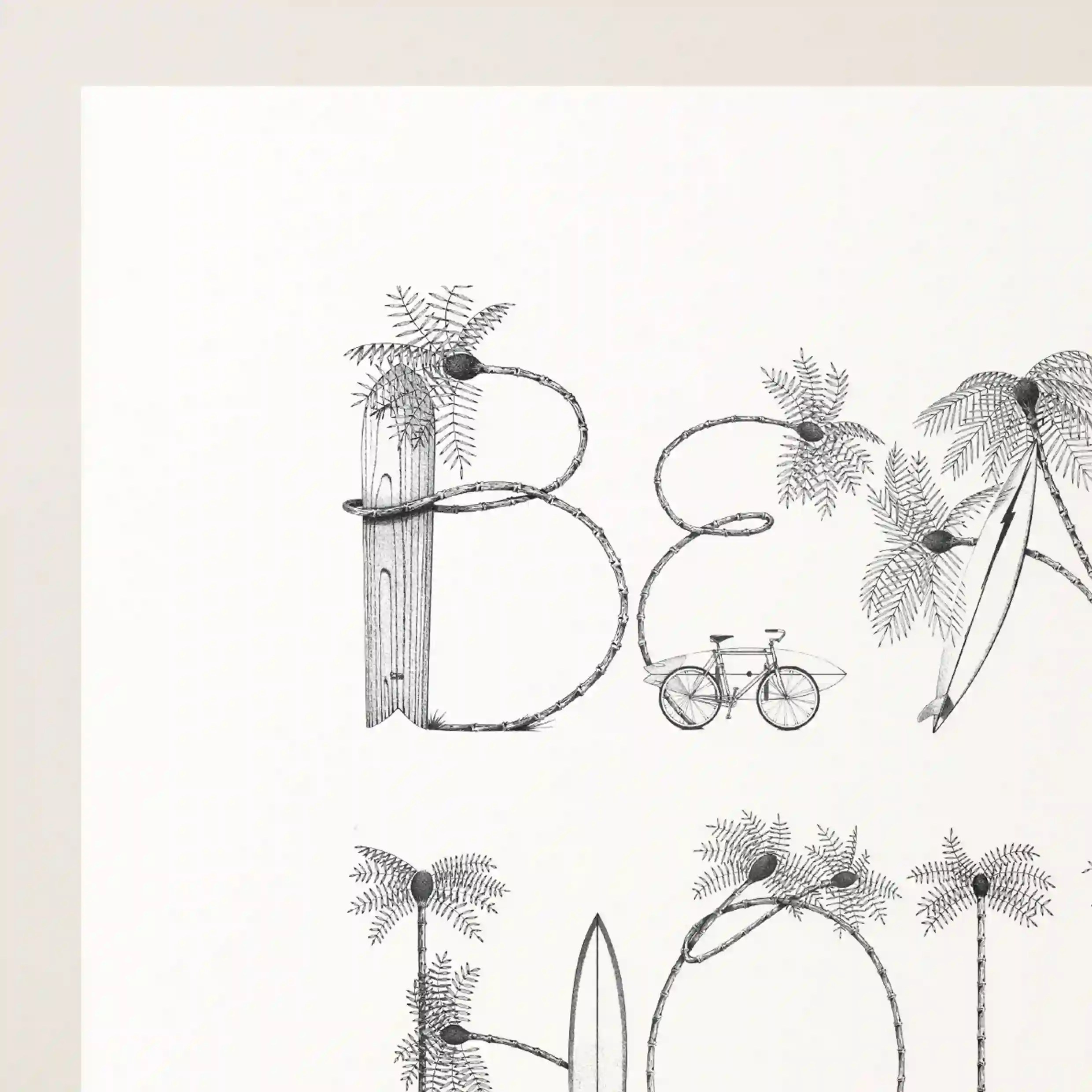 Apportez une touche de vacances et de liberté à votre intérieur avec cette affiche originale, inspirée du littoral et de l’esprit surf. Intitulée BEACH HOUSE, cette création joue sur un lettrage artistique où chaque lettre est sublimée par des éléments marins et côtiers. Idéale pour une décoration épurée et moderne, elle incarne parfaitement l’univers de la mer, du voyage et du farniente.