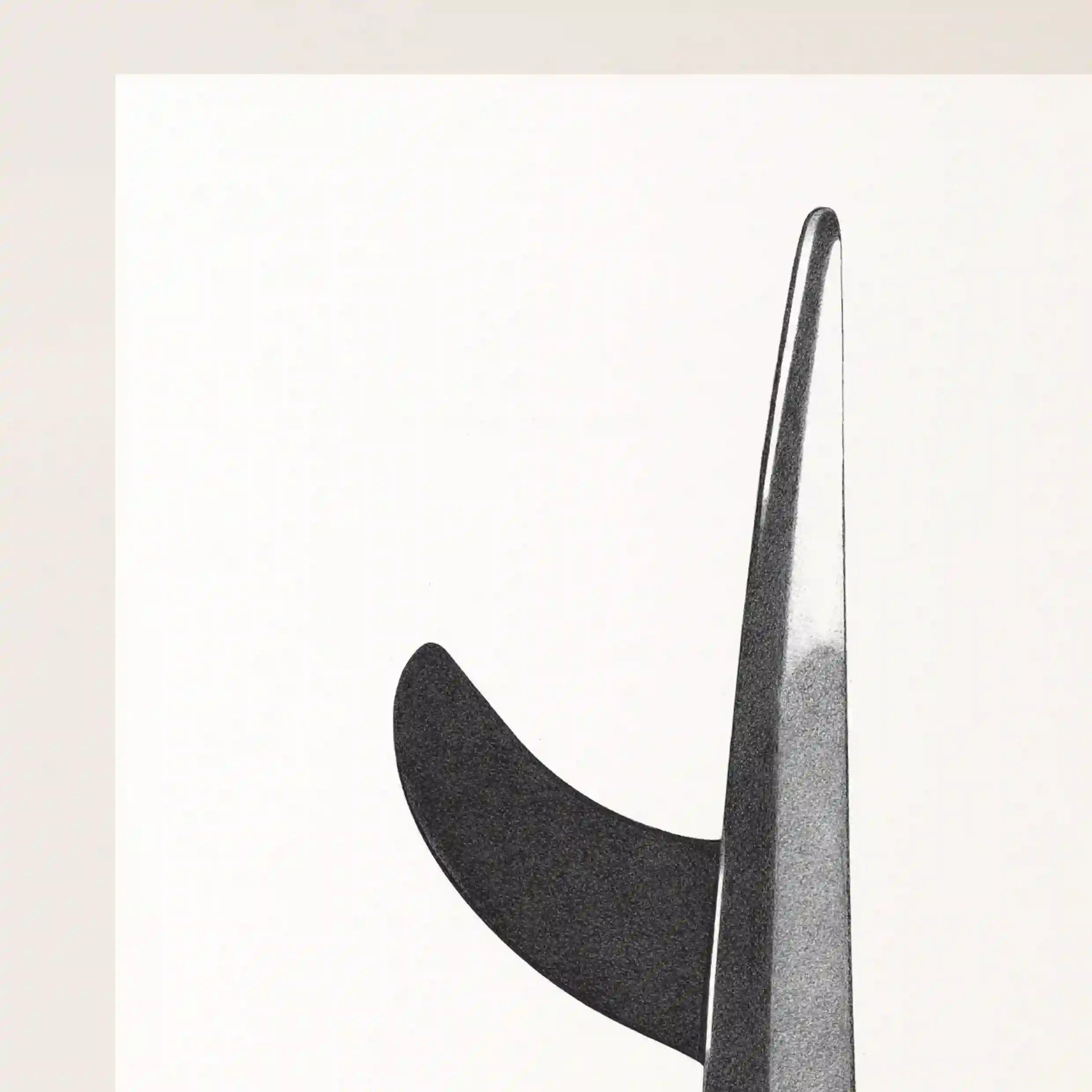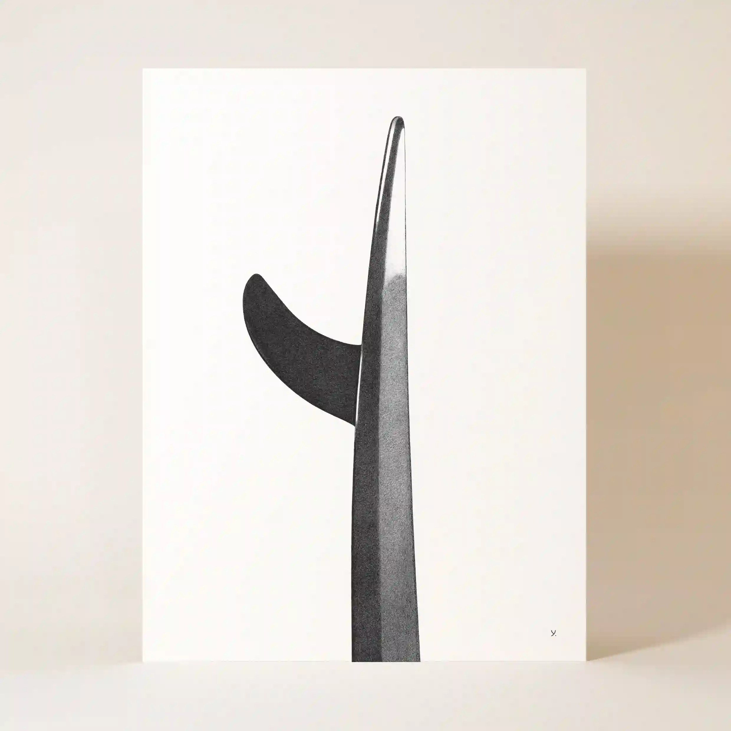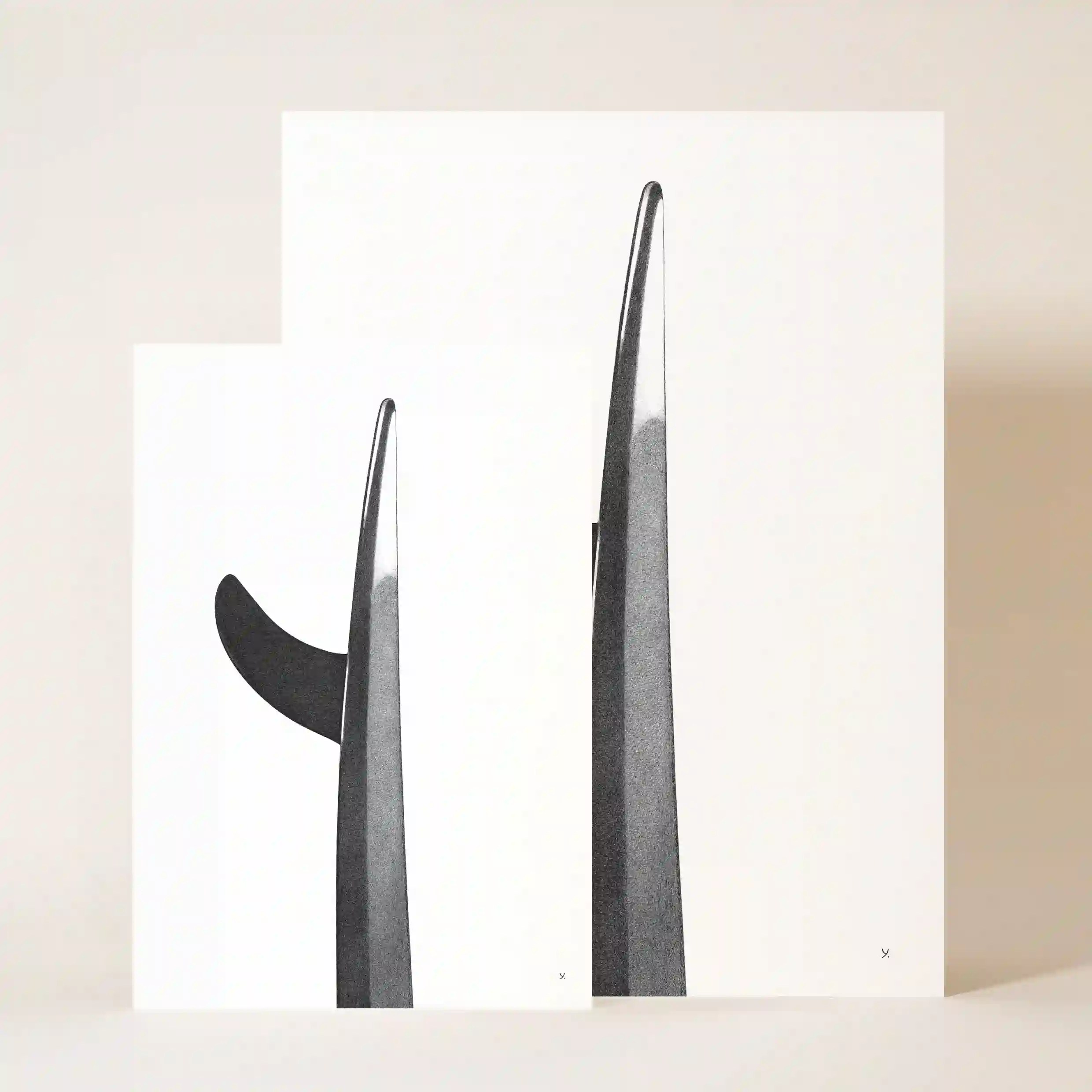 Cette affiche originale illustre avec finesse et précision un détail emblématique du monde du surf : l’aileron d’une planche, capturant l’essence même de cet art de glisse. Ce dessin en noir et blanc, d’une grande sobriété, met en avant la courbe élégante de la planche et de son aileron, jouant sur les contrastes et les ombres pour créer une composition à la fois épurée et puissante.