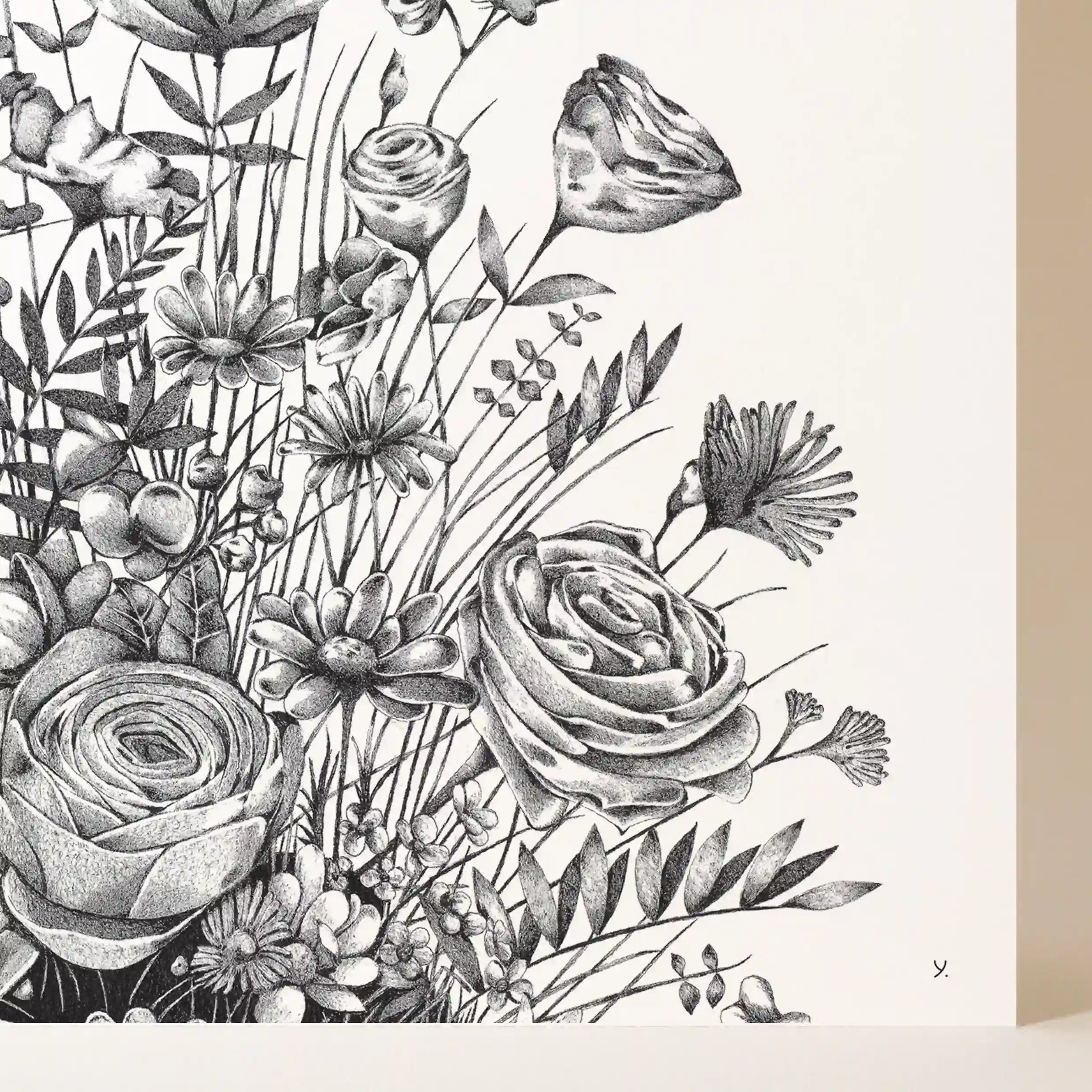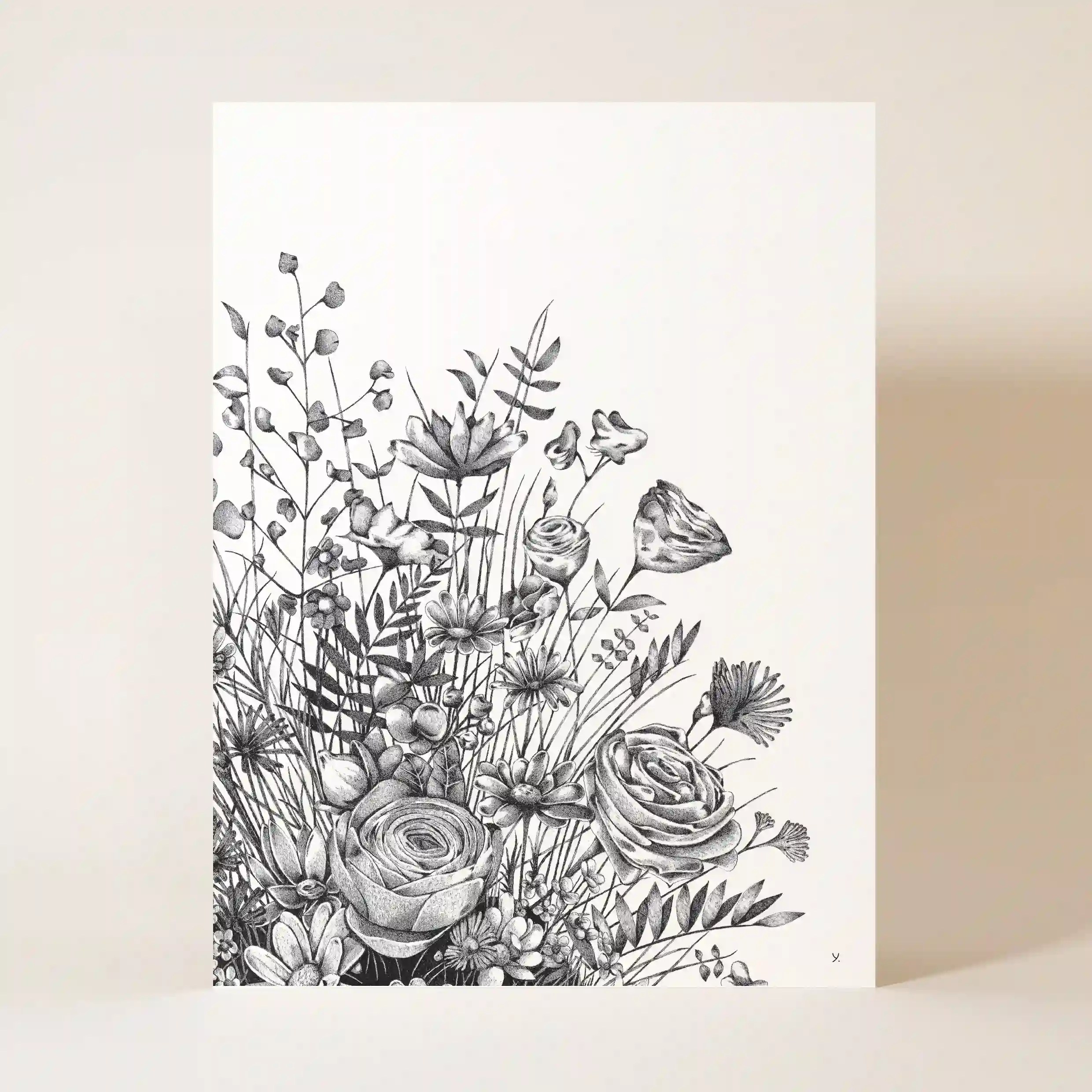 Sublimez votre décoration avec cette affiche florale au design raffiné et intemporel. Ce dessin délicat en noir et blanc capture toute la beauté et la légèreté d’un bouquet foisonnant de fleurs sauvages. Chaque détail a été minutieusement travaillé pour offrir une composition artistique empreinte de poésie et de naturel.