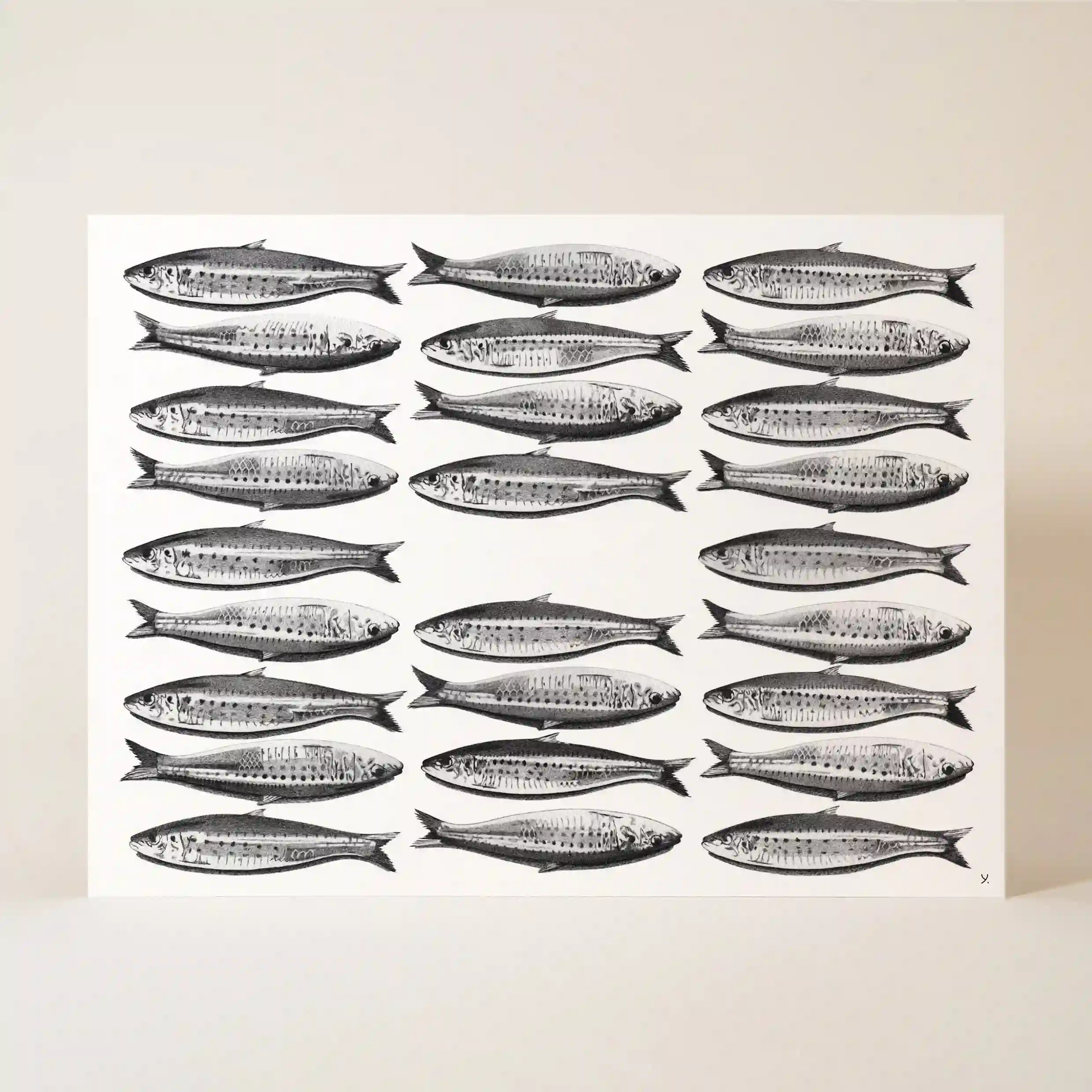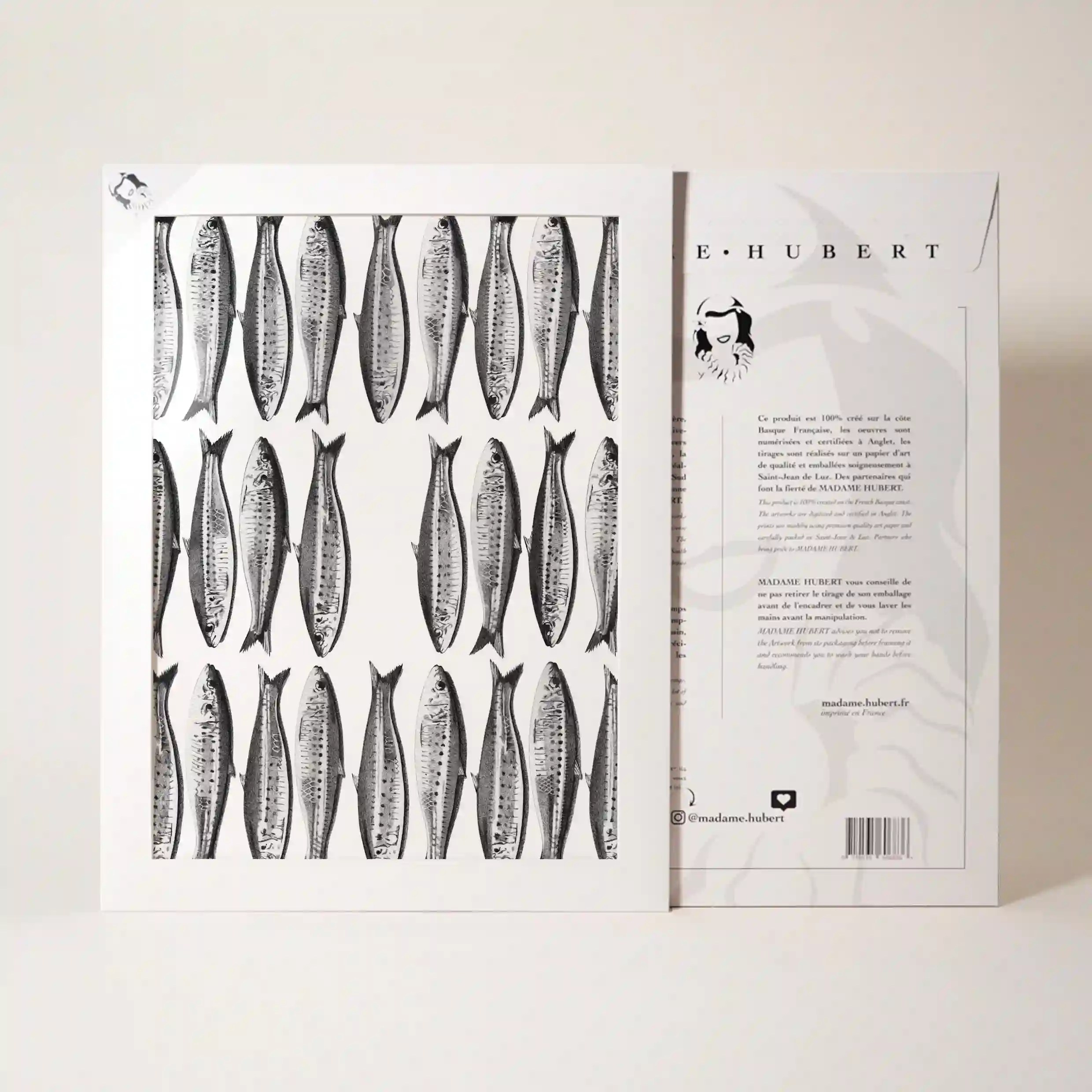 Symbole des traditions maritimes et des ports de pêche, la sardine est une icône dans de nombreuses régions côtières. Cette affiche originale évoque l’ambiance des marchés aux poissons, des conserveries artisanales et des tablées conviviales où ces petits poissons sont dégustés grillés ou en boîte. Elle séduira particulièrement les amoureux de l’océan, les passionnés de cuisine marine et ceux qui apprécient l’art inspiré par la nature.