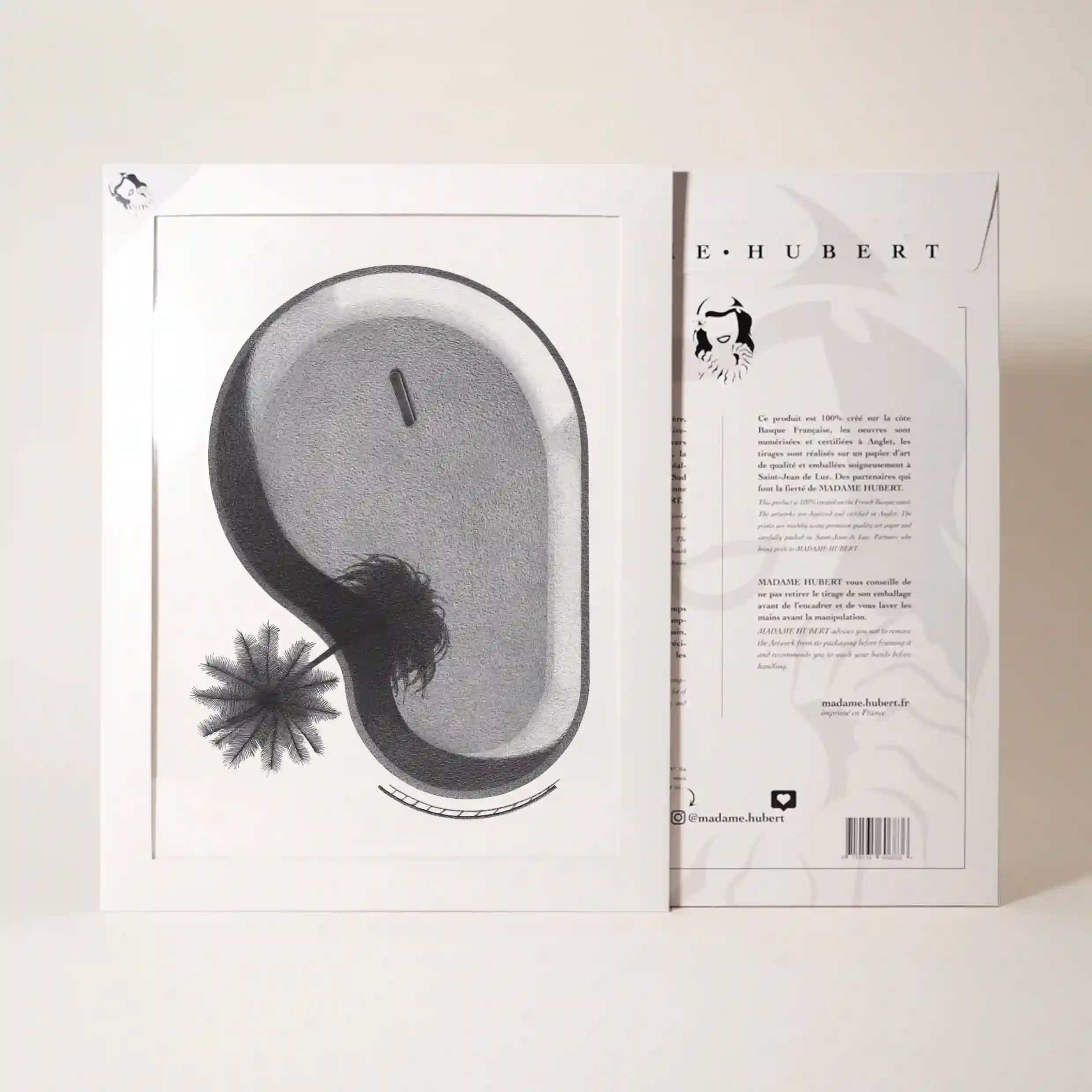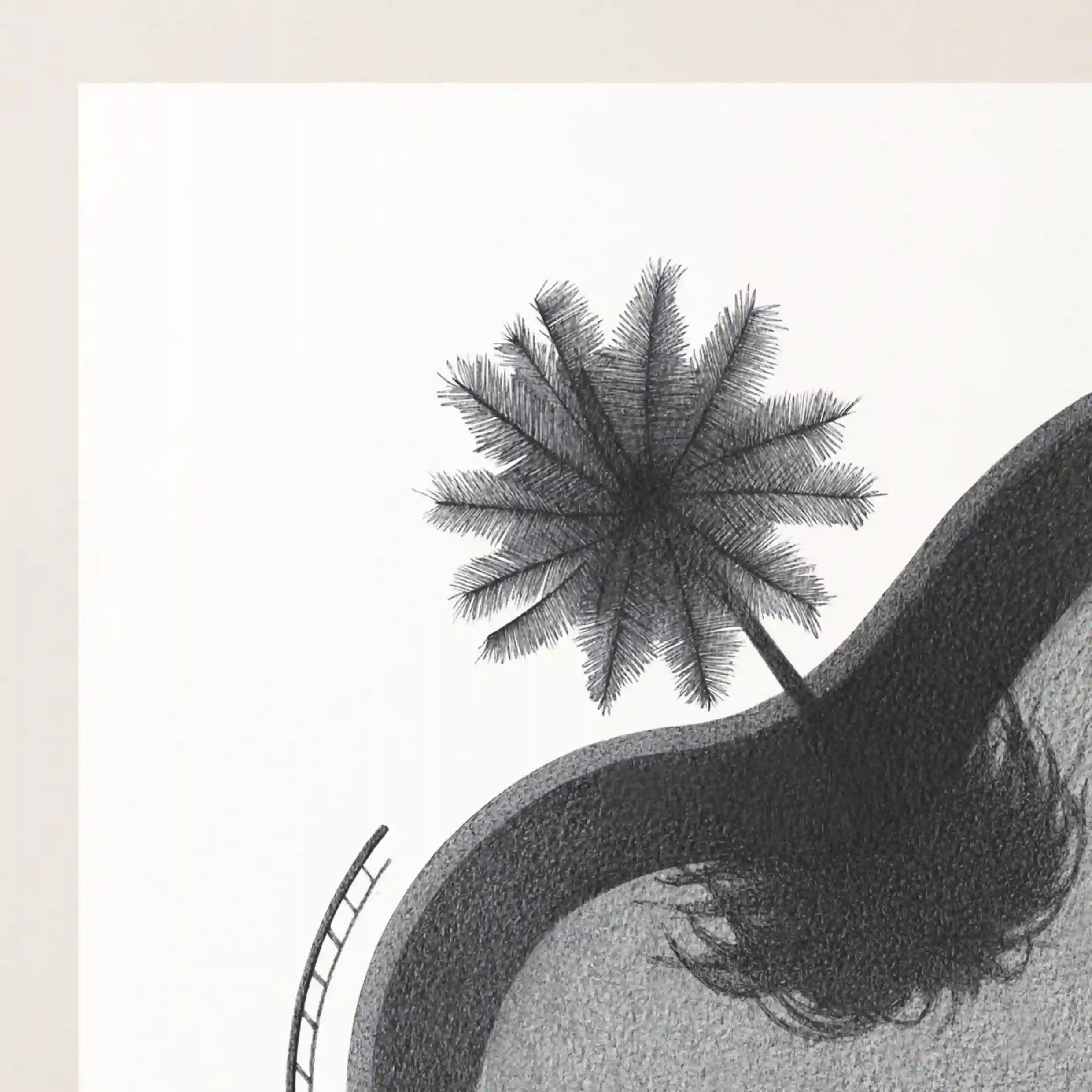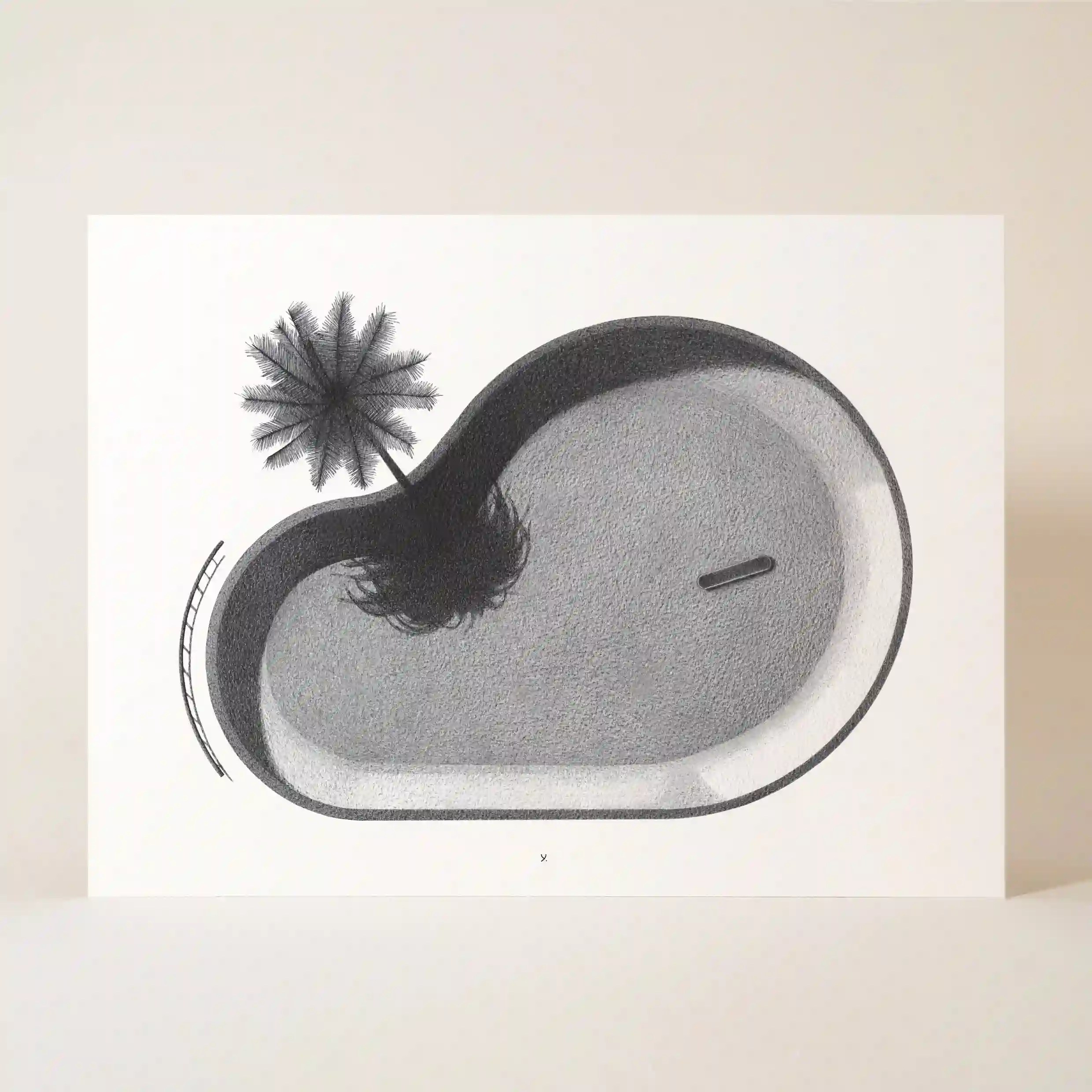 Laissez-vous séduire par cette affiche skate unique, où l’univers du skateboard fusionne avec l’esthétique minimaliste et épurée du noir et blanc. Ce dessin envoûtant représente une piscine vidée, transformée en un skatepark improvisé sous l’ombre d’un palmier, une scène emblématique de la culture du skate californien.