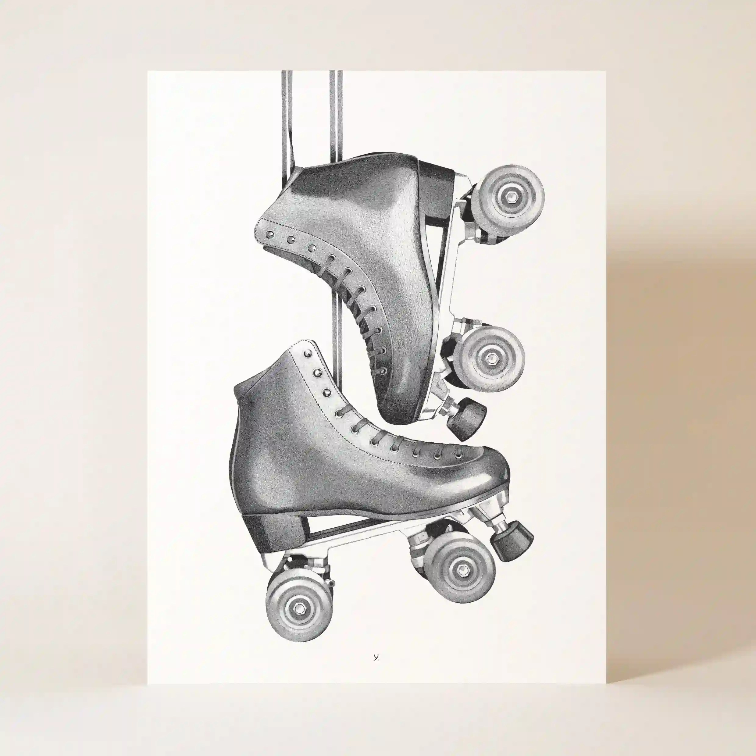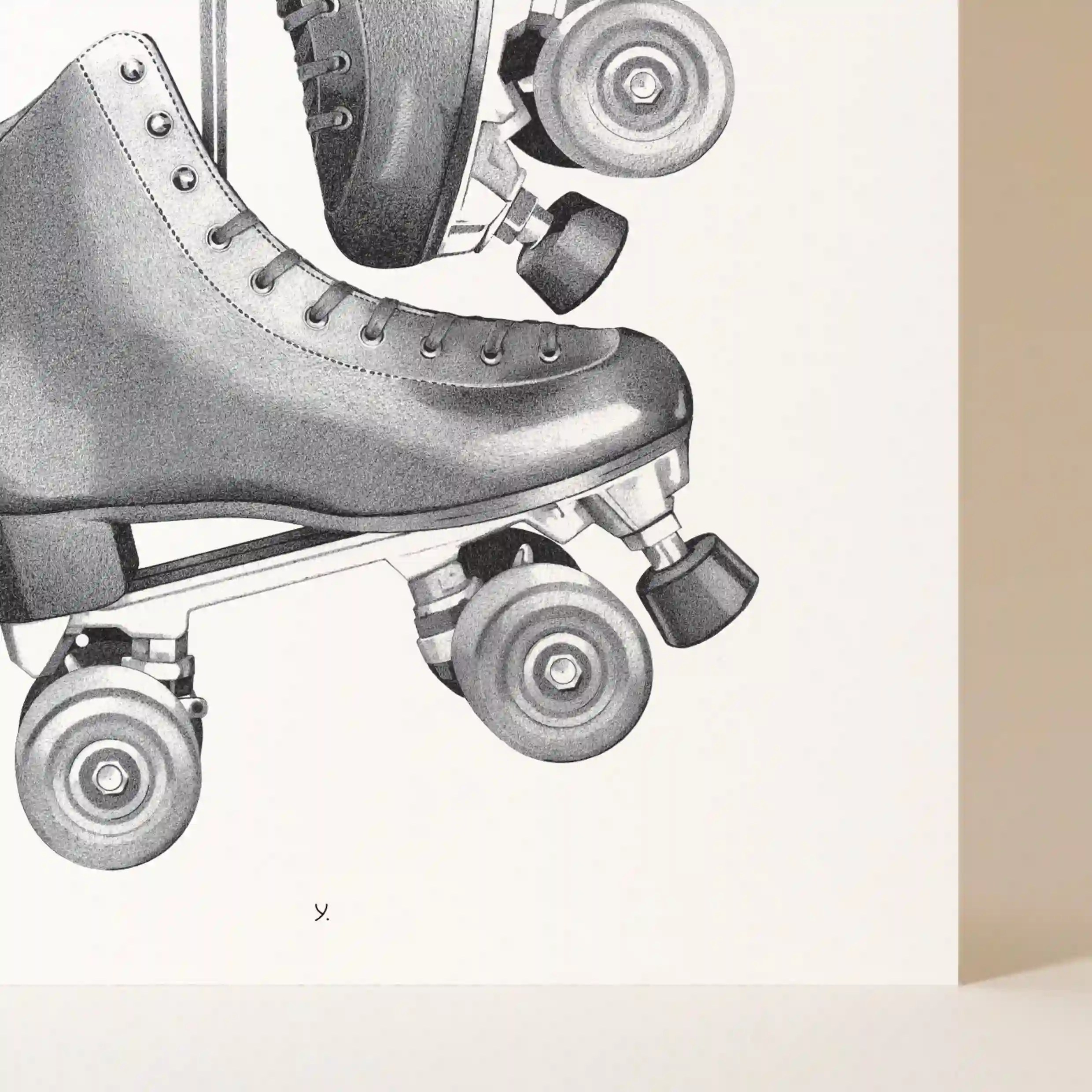 Les années 90 ont marqué l’apogée des loisirs en plein air et des tendances rétro qui reviennent aujourd’hui sur le devant de la scène. Ce dessin nous plonge dans cette époque où la culture urbaine et le sport de glisse avaient une place centrale dans le quotidien. Un clin d’œil subtil aux soirées rollers, aux parcs animés de jeunes skateurs et riders, et aux clips musicaux où ces patins étaient des accessoires incontournables.