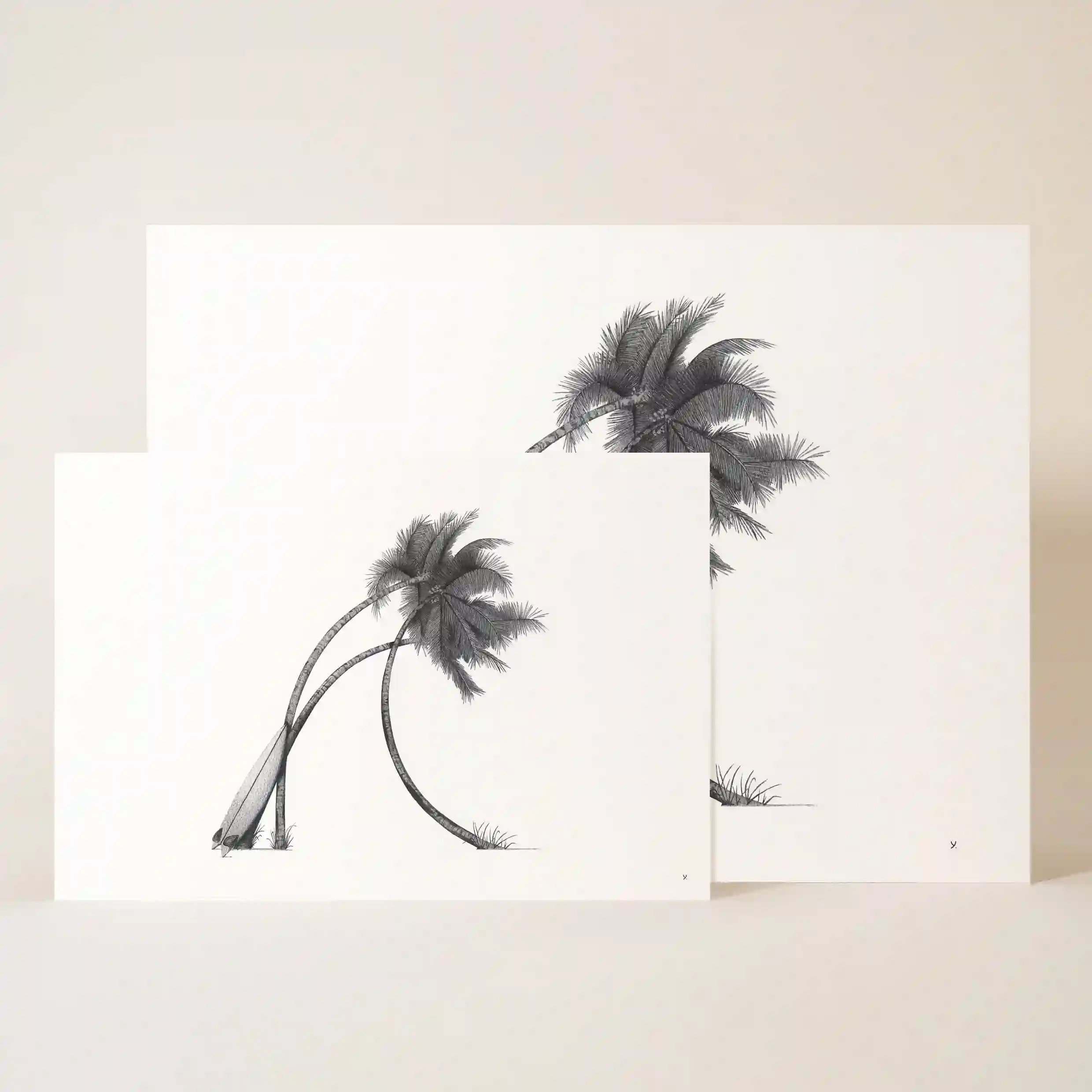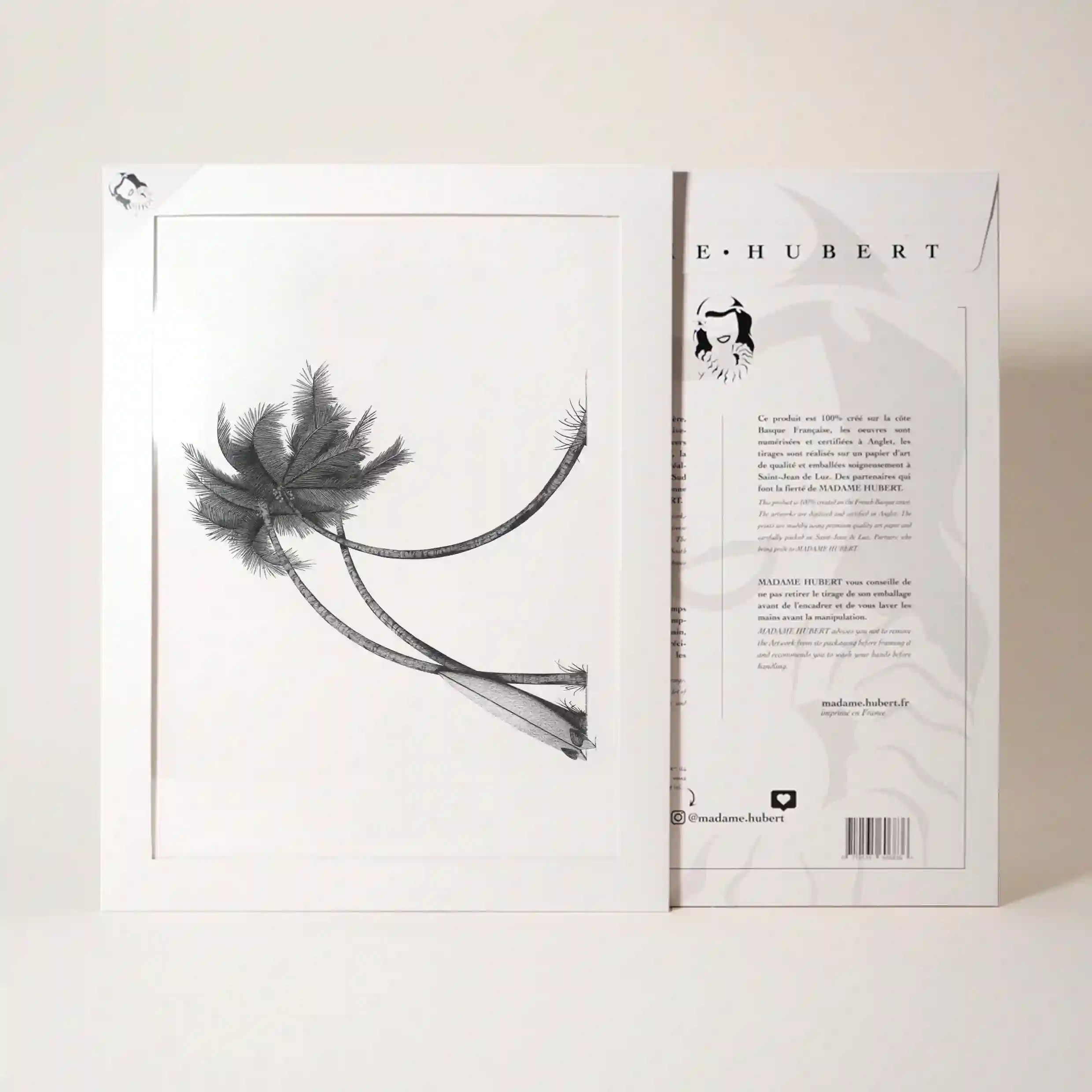 Plongez dans un univers tropical et maritime avec cette affiche mer élégante et raffinée. Le dessin en noir et blanc met en scène deux palmiers aux courbes délicates, évoquant une atmosphère exotique et relaxante. L’un des palmiers se distingue par l’ajout subtil d’une planche de surf reposant contre son tronc, un détail qui rappelle les plages paradisiaques et l’esprit de liberté qui anime les passionnés d’océan.