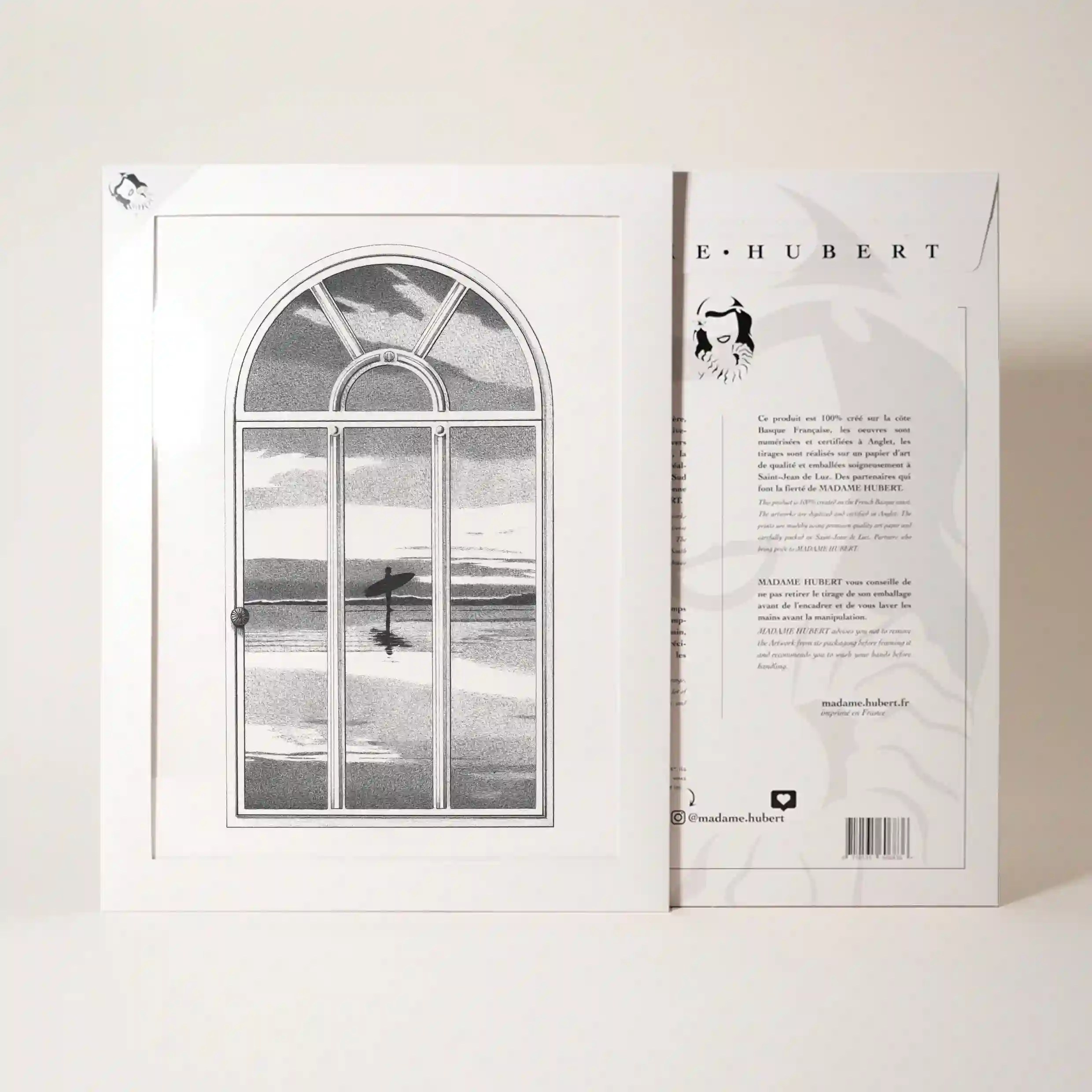 Cette affiche est une ode à la mer, à l’attente du moment parfait où le surfeur et l’océan ne font plus qu’un. Le contraste entre l’intérieur et l’extérieur, la fixité de la fenêtre et l’infinité du paysage marin, crée une narration visuelle puissante, qui parle à tous ceux qui rêvent de grands horizons et d’évasion.