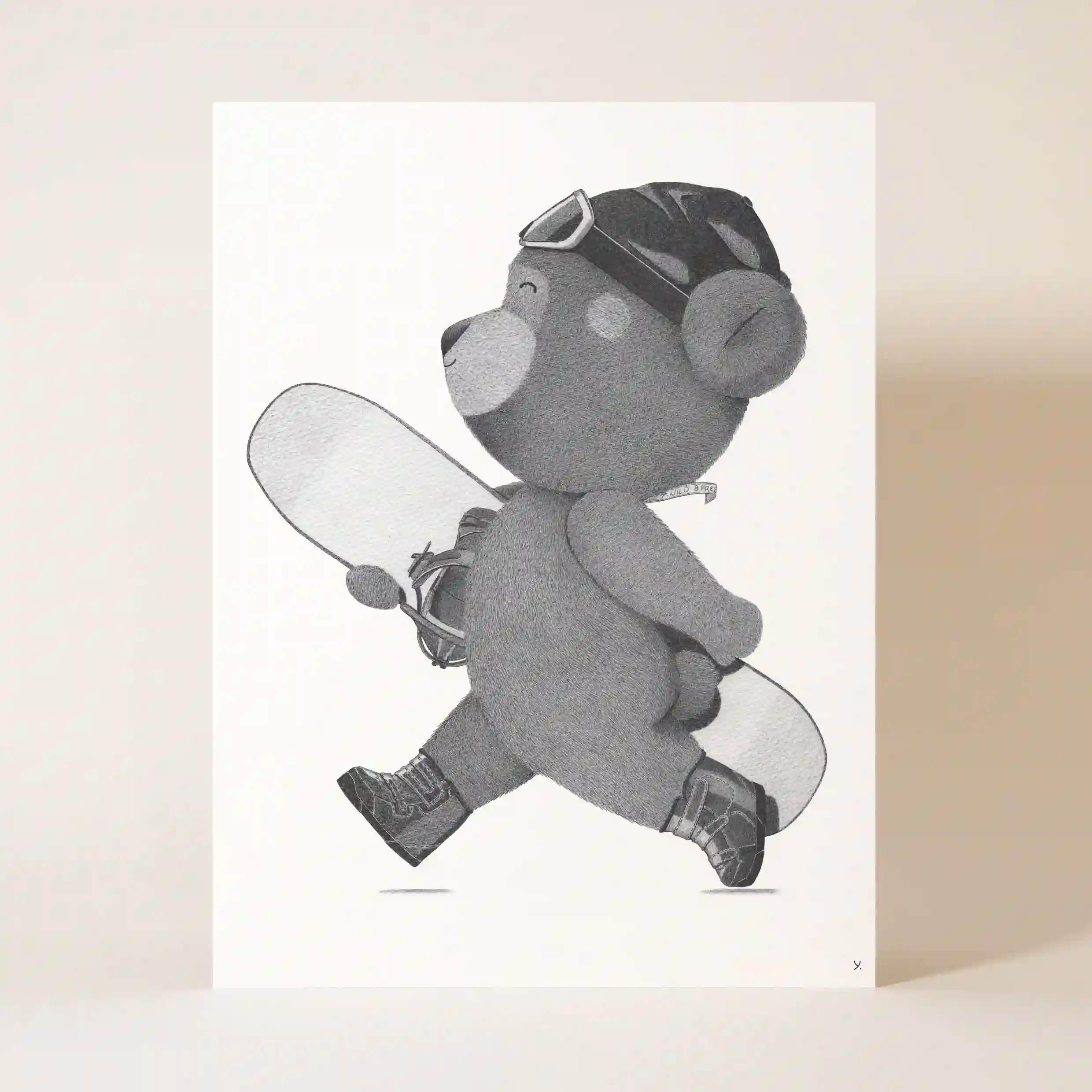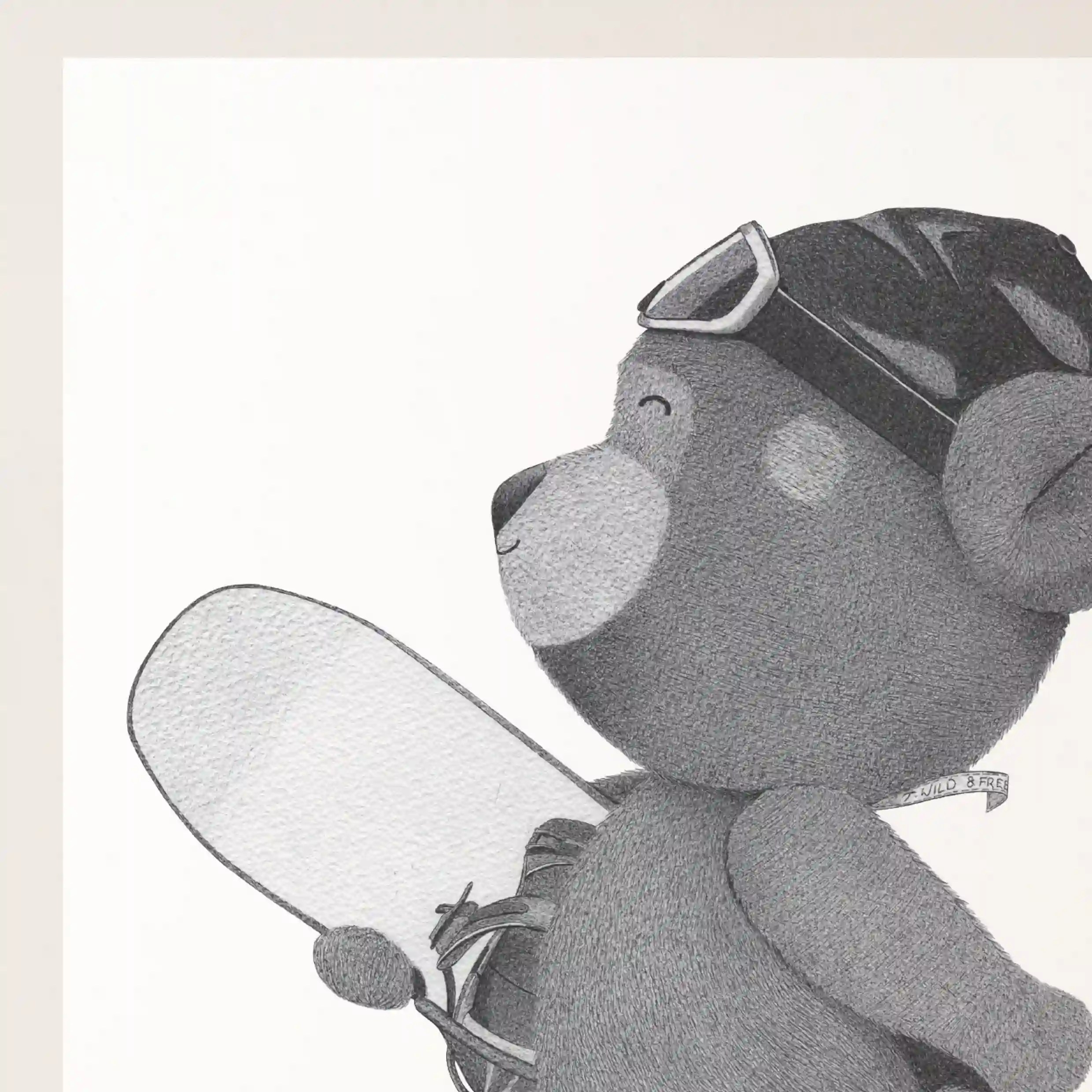 Le réalisme des textures et des détails – des poils doux de l’ourson aux reflets subtils du matériel de snowboard – confère à cette affiche originale un rendu exceptionnel. Chaque élément est travaillé avec finesse, offrant une image à la fois douce et énergique, parfaite pour une décoration inspirante et ludique.