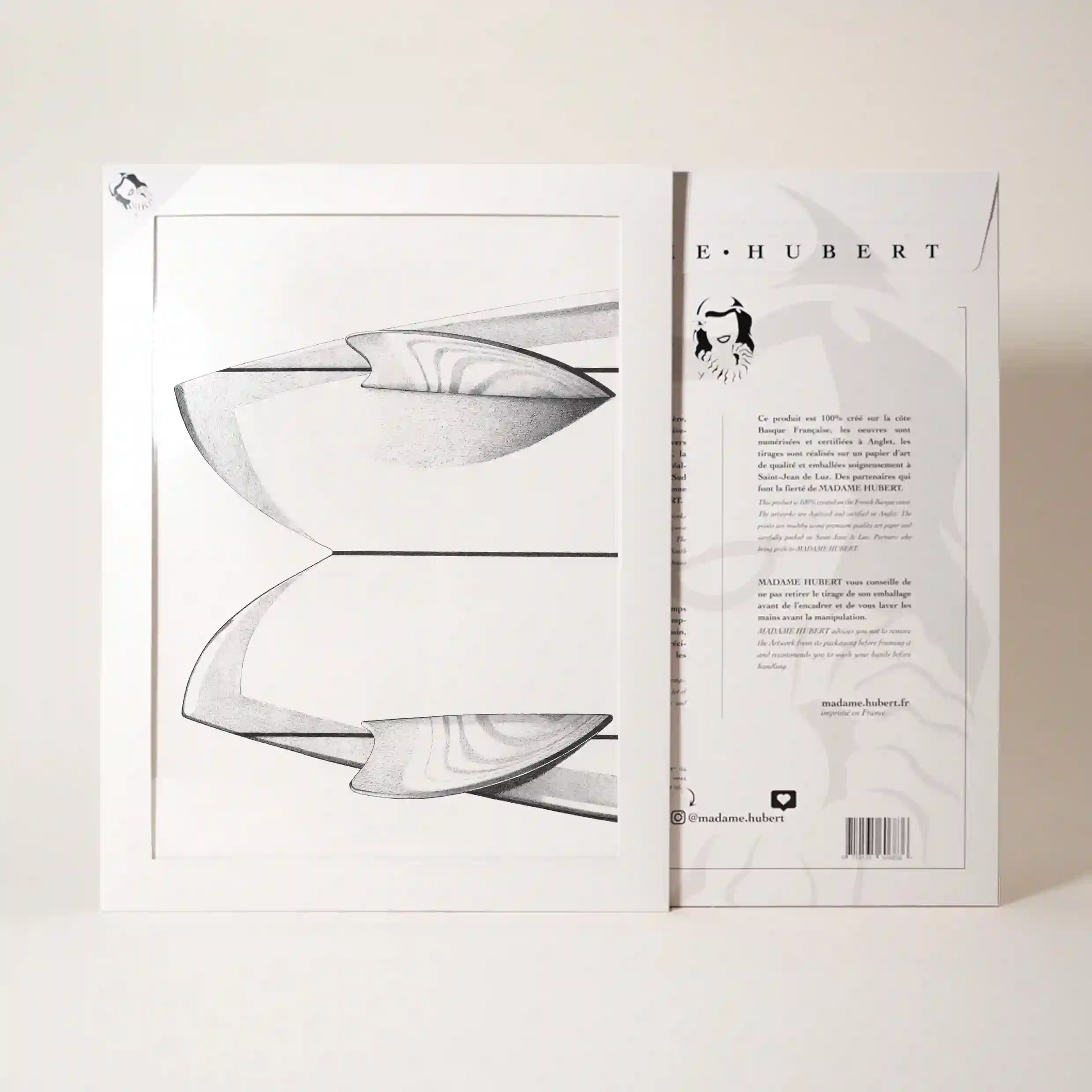 L’artiste a su capter l’essence de la planche de surf en mettant en valeur ses lignes fluides et ses courbes harmonieuses. Le contraste entre les ombres et les zones lumineuses renforce l’impression de profondeur et donne vie à cet objet iconique. Le choix du monochrome renforce le caractère intemporel de cette affiche mer, lui conférant une élégance qui s’adapte à tous les styles de décoration.